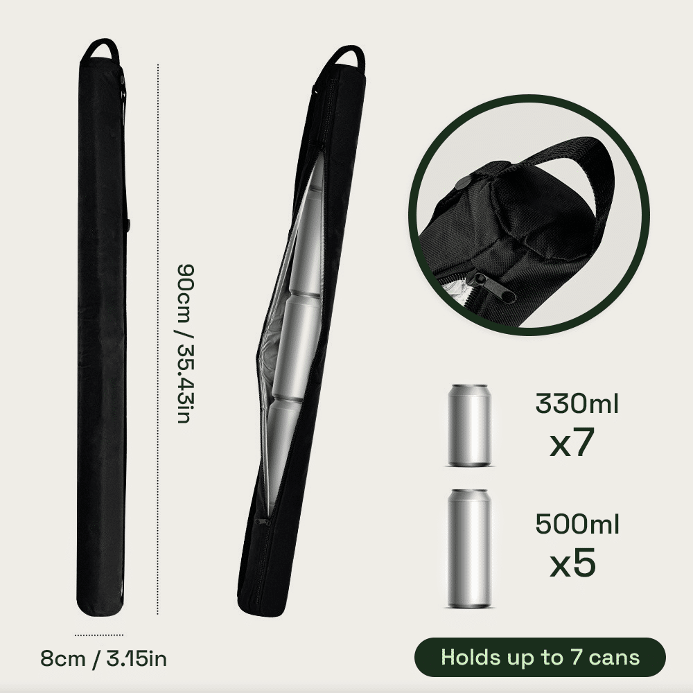 Up to 7 standard cans (300ml), or 5 large cans (500ml) keeping them cool and ready throughout your round.